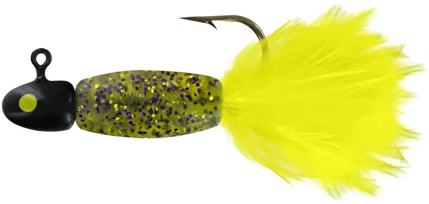 This new Big Bite Baits 3/32oz panfish jig was designed with Al Lindner and the Angling Edge team. It is ready to fish out of the package with a solid body and feather tail that moves with the slightest rod twitch.