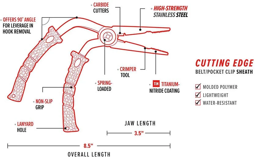 Featuring the renowned Bubba non-slip grips and a high-end, molded polymer sheath with a belt clip, these pliers offer maximum control, comfort, and convenient storage.