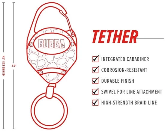- Finished in the Classic Bubbba Red with a Textured look, the Bubba 42 Inch Tether is a game changer for your tool management and is a must have! Secure yours today!