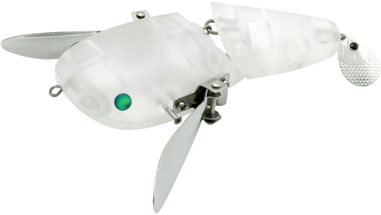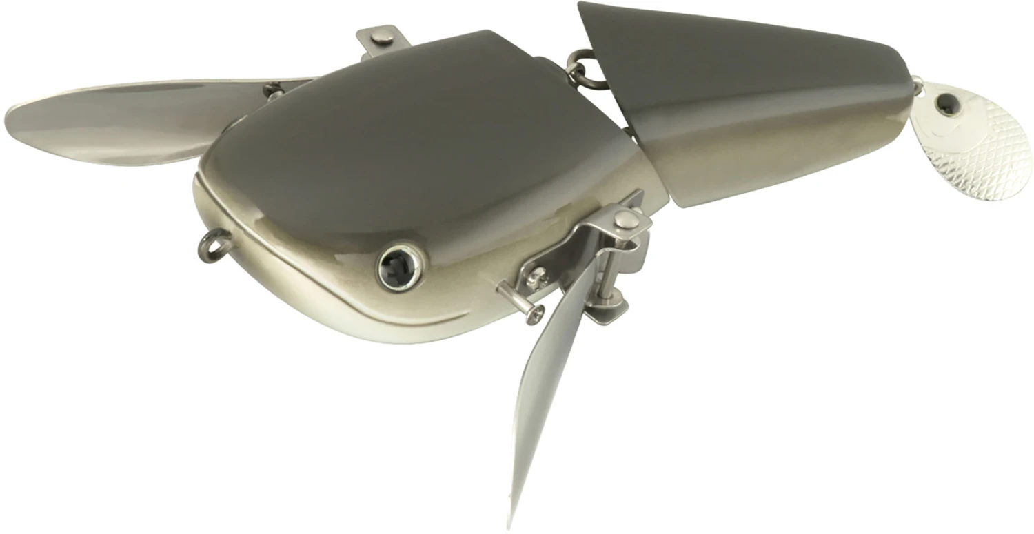 Designed to mimic a Baby Catfish, this jointed “Crawler” bait features large, adjustable wings on its head that create a commotion as it crawls across the surface, and allowing for customization of its noise and action!