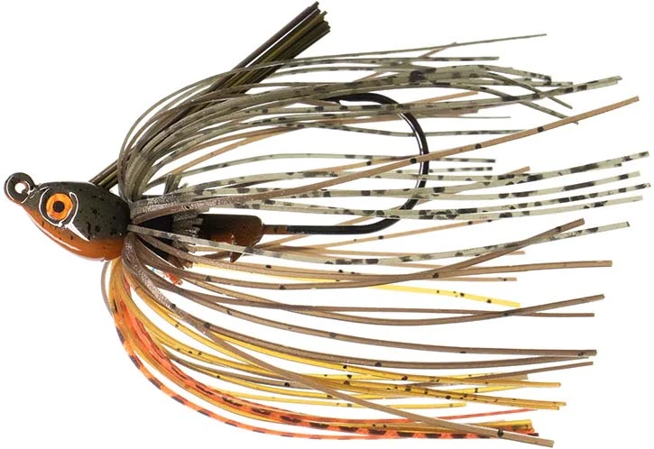 With its bullet head design, offering improved maneuverability through vegetation, you can be sure the bait will smoothly navigate dense cover, ensuring that it remains in the strike zone and maintains its enticing action. Additionally, the jig is equipped with 3-D eyes, providing a more realistic look that can further attract fish and trigger their predatory instincts.