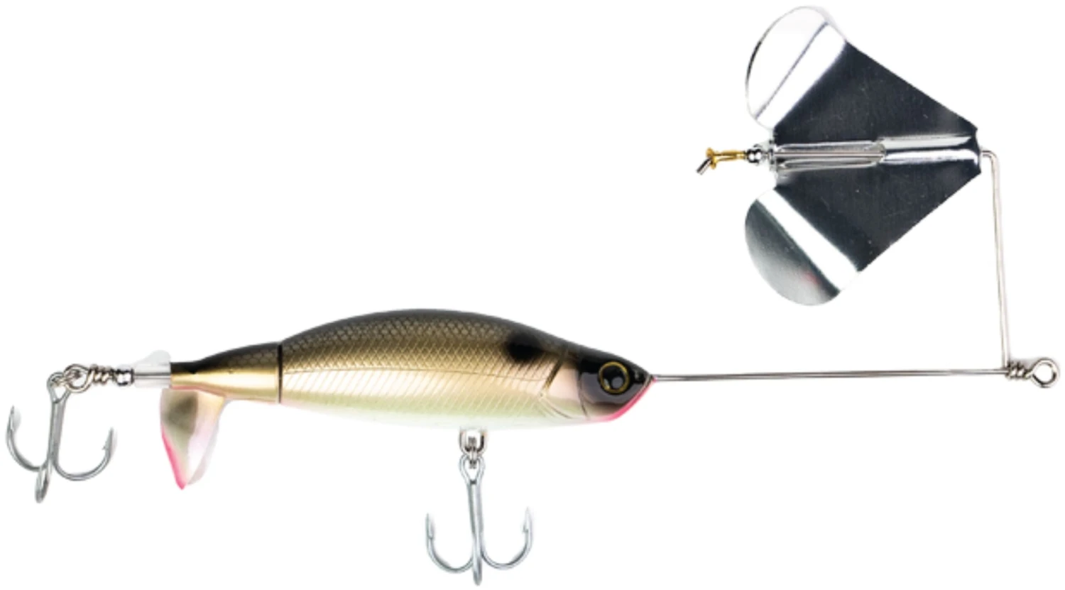 - Dual propeller design allows for 2 different styles under slow and fast retrieve to keep the fish guessing.