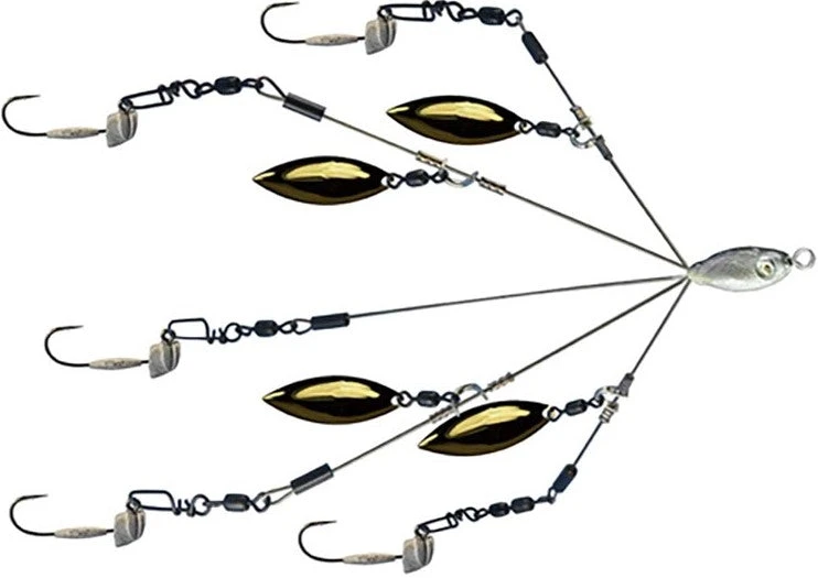 - Designed with a Heat Treated 1/4 inch lightweight wire, 4 Willow Blades for ultimate flash, an extra tough Impact Resistant Head w/Swivel, and 5 Arms enabling the use of up to 5 baits, all while staying at a 4 inch profile!