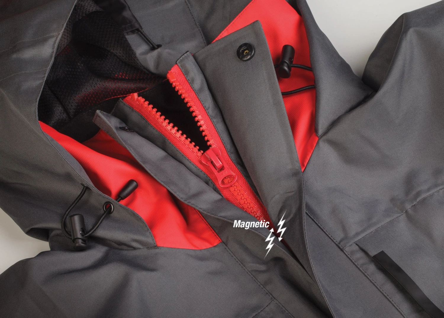 - Adjustable drawstrings on the hood and waist, adjustable wrist cuffs, and a magnetic flap on the main zipper.