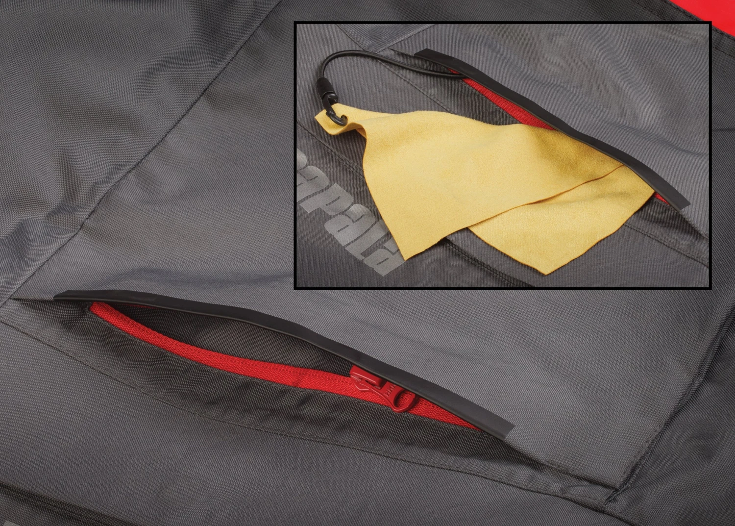 The Rapala Rain Jacket is a grey and red foul-weather fishing jacket. Built to live up to the Rapala name, these jackets combine the latest in outerwear technology with premium components to create a superior foul-weather protection experience for anglers.