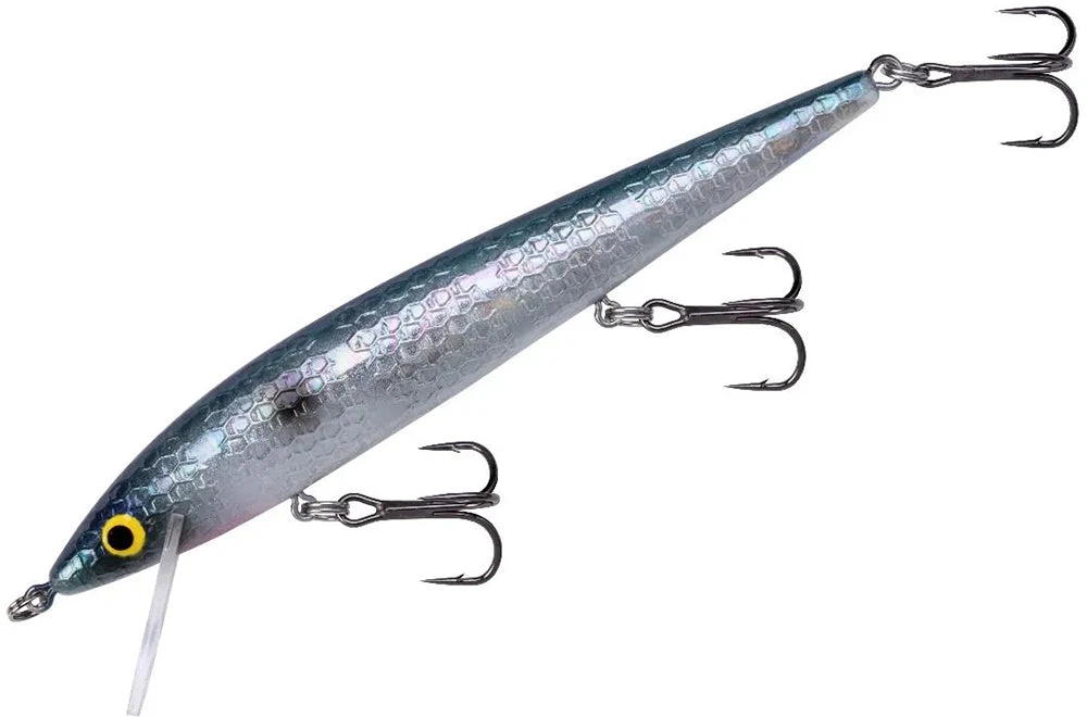 Its unique layering process, beginning with a clear core and building with multiple coats of pearlescent colors, creates an irresistible, lifelike baitfish appearance underwater. This 4.5-inch, 3/8-ounce jerkbait dives to 6 feet when cranked and 10-14 feet when trolled, effectively targeting mid-column gamefish!
