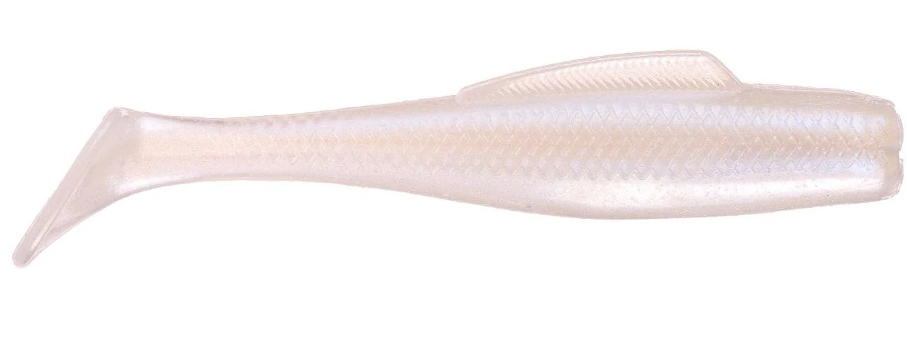 The bait has realistic molded scales and a top fin that helps it run true while also adding to the realism of the presentation. The boot-shaped paddle tail produces seductive swimming action that is great both weightless on a swimbait hook or trailed on a swimbait jig head, swim jig, underspin, or vibrating jig.
