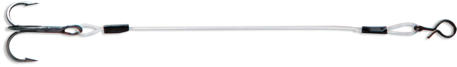 The VMC Quik Strike Treble Trailer Hook is a premium treble trailer hook rig assembled with Sufix 12 pound fluorocarbon leader, a “Fast Snap” connector, and a size 10 high-carbon steel hook. It’s designed to help with hook-up ratios when fish are short striking your lure. It can also be used for rigging larger live baitfish for muskie and pike. Available in Red and Black Nickel finishes with 2 or 3 inch leader.
