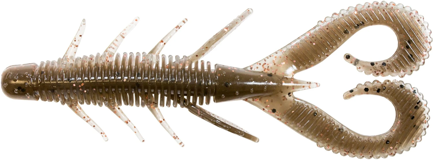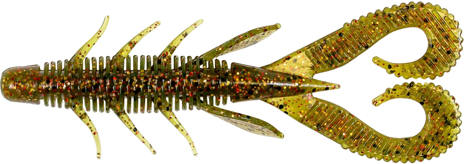 - It has ribbed bodies, tapered legs, and textured curly tails for maximum water action.